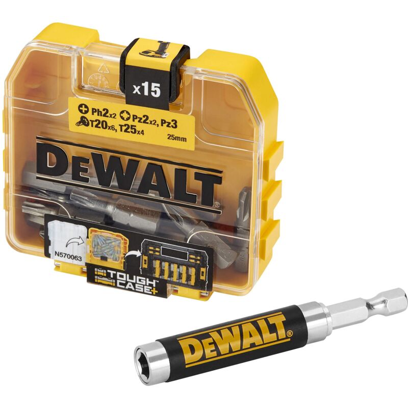 DEWALT DT71573-QZ - Set di accessori TOUGHCASE - Punte per avvitatura, PH2 x 2, PZ2 x 2, PZ3, T20 x 6, T25 x 4 15x Mixte (Maj Torx) + 1 pcs