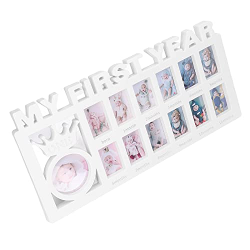 DEWIN Cornice per Foto, Cornice per Foto Neonato, 12 Cornici per Foto Piccole Lucide durevoli Registrano la Crescita Mensile del Bambino Cornice per Foto del Bambino per Regalo(Bianco)