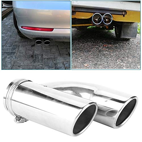 DEWIN Profilo di Scarico Doppia for Auto,A2008 Tubo di Scarico Universale for Auto Punta Circolare Estremità Obliqua Doppia Uscita Gola Posteriore 62mm