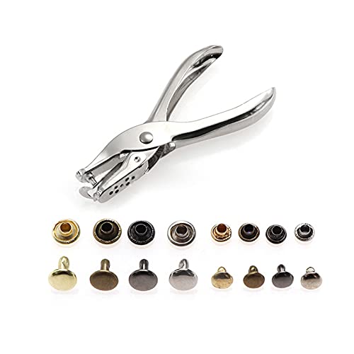 [Facile da usare]: questo kit di rivetti in pelle fornisce 4 strumenti ausiliari progettati per trattenere i rivetti per impedirne il movimento e semplificare l'installazione, consentendo ai rivetti di essere piatti dopo l'installazione.