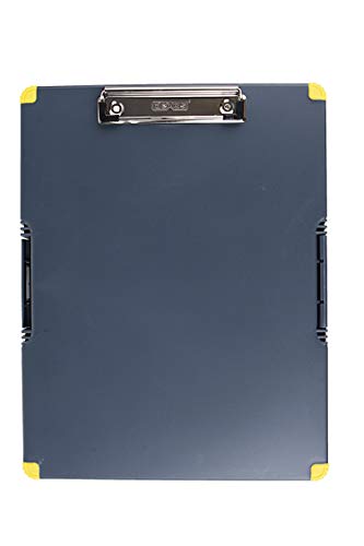 La custodia frontale presenta una superficie di scrittura liscia, clip in metallo e un ampio scomparto per blocco note, tablet elettronici