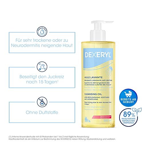 DEXERYL Olio detergente: per la pulizia quotidiana del corpo e del viso, per pelli secche e neurodermiti, 1 x 500 ml