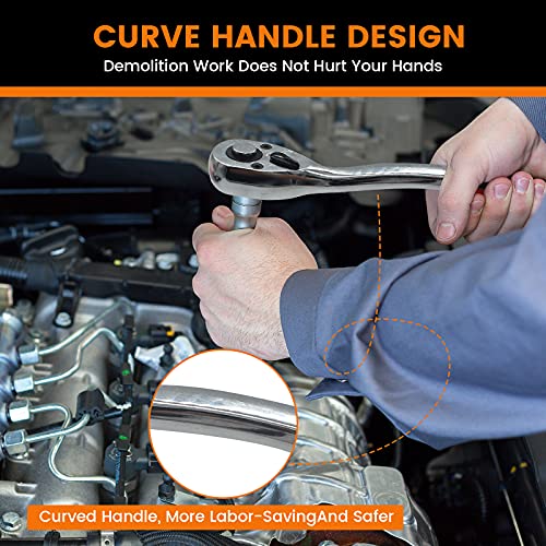 DEXIFUXI Cricchetto reversibile 1/2" Cricchetto rotante con 72 denti in acciaio CV, pulsante di scatto antiscivolo a gomito