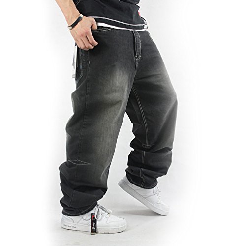 Dexinx Uomo Ragazzi Exquisite Baggy Embroidery Stampa Dancing Jeans Primavera Popolari Pantaloni Hip Hop in Denim Nero 30