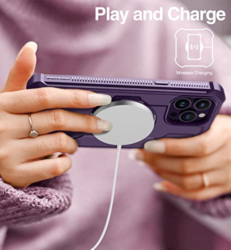 Dexnor Cover Magnetica per iPhone 14 Pro Max Cover Compatibile con MagSafe [Con pellicola protettiva a 360 ° e staffa],Heavy Duty Protezione Militare Grado Shockproof Cover protettiva - Viola