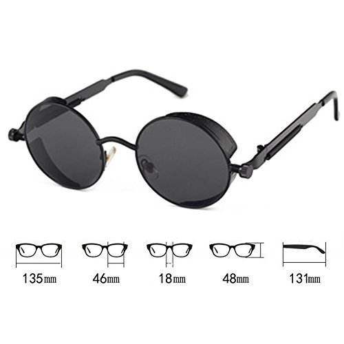 Deylay Donne Uomini Steampunk Occhiali da sole Vintage Rotonda Eyewear UV400 Color 3