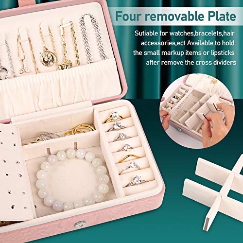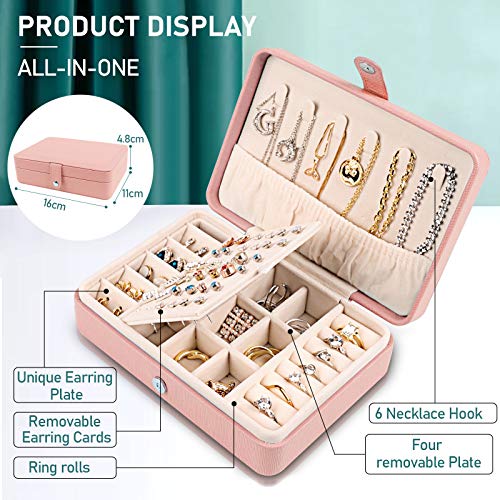Deyooxi Portagioie, Porta Gioielli Donna, Portagioielli in Pelle PU,Portable Porta Gioie,Piccolo Portagioie da Viaggio Scatola Portagioie per Anelli Orecchini Collane Bracciali,Rosa