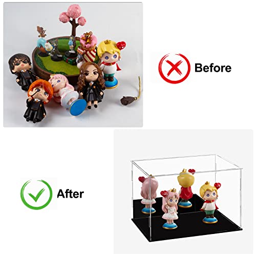 Dezzer Vetrina acrilica con Base Nera, assemblare controsoffitto in Acrilico Scatola Antipolvere Vetrina per Figure d'azione Giocattoli, da Collezione (30 x 20 x 20 cm)