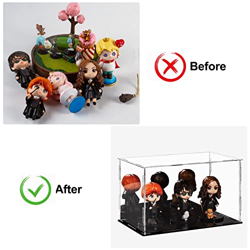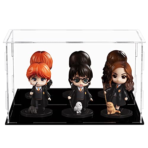 Dezzer Vetrina acrilica con Base Nera, assemblare controsoffitto in Acrilico Scatola Antipolvere Vetrina per Figure d'azione Giocattoli, da Collezione (25x15x15 cm)