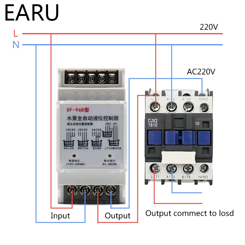 DF-96D D Automatic Water Level Controller Switch 220V Tank Liquid Level Detection Sensor Porbe Water Pump Controller Control