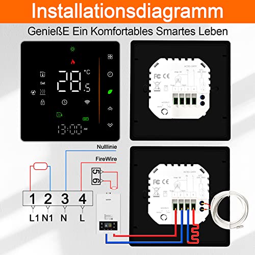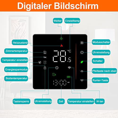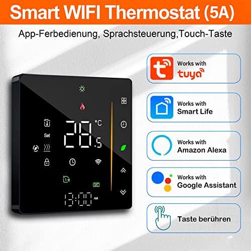 DFEICO Termostato intelligente WiFi, per riscaldamento a pavimento, programmabile, per ambiente e riscaldamento a pavimento, 2.4 GHz, WiFi