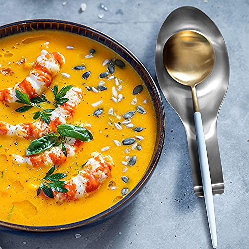 DFGF 2 Pezzi Porta Mestolo a Cucchiaio, Appoggia Cucchiaio, Appoggia Cucchiaio Acciaio Inox, Poggiamestolo in Acciaio Inox per Cucina, Cucchiaio, Spatola, Bacchette (Argento)