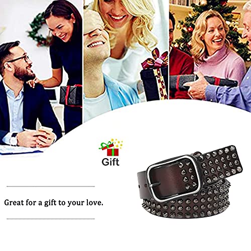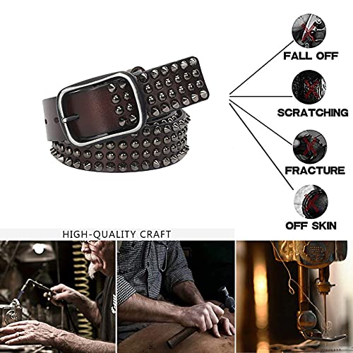 DFGGE Cintura a 4 File Borchie Coniche Spike Rivet Cinture in Metallo Pelle Punk Gothic Hip Hop per Abiti, Jeans, Pantaloni E Accessorio di Abbigliamento,caffè,110cm/waist:36"~38"