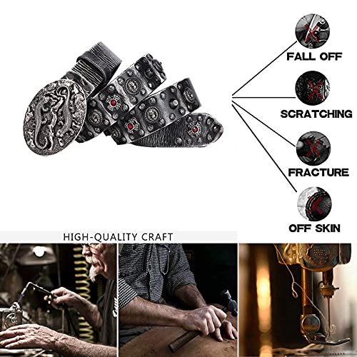DFGGE Cintura in Pelle da Uomo Fibbia in Argento Vintage Lucertola intagliata Geco Punk Rock Finitura invecchiata Cinture con Borchie Colorate con Teste di Leone,Bianca,110cm(36"~38")