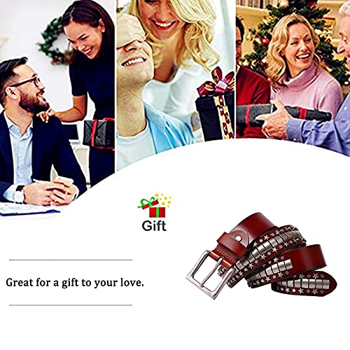 DFGGE Cintura con Rivetti Punk Rock con Gotiche Borchiate con Stella Luminosa e Borchie Metalliche circolari per Jeans, Pantaloni, Accessori Abbigliamento da Donna/Uomo,Marrone,105cm/waist:34"~36"