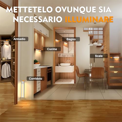 [Installazione semplice]Led cucina sottopensile senza fili, Il sensore può essere facilmente fissata o staccata ovunque,utilizzando la striscia lampada magnetica con retro adesivo della lunghezza di 3 metri. Di fatto, non sono necessarie viti o attrezzi per montare il sistema di illuminazione. La facile installazione di questa luce corridoio sensore movimento non è adatta solo alle persone pigre, ma anche a chi vuole usare questa luce notturna come torcia.