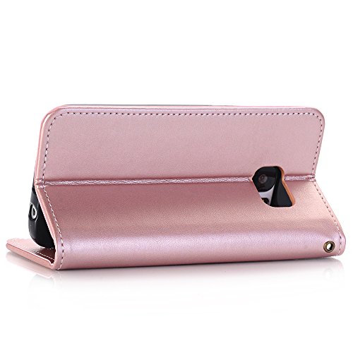 Dfly - Custodia a portafoglio in ecopelle con motivo di rose e farfalle a rilievo, chiusura magnetica robusta e invisibile, funzione automatica di assorbimento urto, adatta per iPhone Se, 5S, 5, Samsung Galaxy S3, S4, S5, S5 mini, S6, S6 Edge, S6 Edge Plus, S7, S7 Edge., Ecopelle, Rose Gold, Samsung Galaxy S7