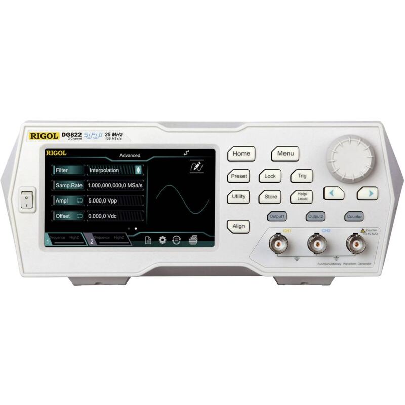 Dettagli tecnici Alimentatori VDE Alimentazione a rete Calibrato di fabbrica senza certificato Caratteristiche generatori di funzione modulazione Dimensione del prodotto, larghezza 238 mm Dimensioni (L x A) 238 mm x 97 mm Dimensioni prodotto Altezza 97 mm Frequenza (Max.) 25 MHz Interfacce (generatore di funzione) USB, Dispositivo USB, Host USB Numero canali (LOV) 2 canali Peso 1.75 kg Tipo prodotto Generatore di funzioni Velocità di campionamento: 125 MSa/s Capacità di memoria: 2 Mpts (8 Mpts opzionale) DG822 generatore di funzioni arbitrarie Il modello DG822 dispone di 2 canali di uscita e di una memoria interna di 2 Mpts. Oltre alle tipiche Funktioen, vedere oltre 160 segnali arbitrari come forme d'onda ECG integrata, curve di Gauss, Lorentz, Dual Tone, ascesa e caduta esponenziale ecc. Elevata qualità del segnale di 1 ppm a una risoluzione di 16 bit. Testo tradotto automaticamente. Punti di forza e dettagli Larghezza di banda 25 MHz 2 uscite Sinusoidale, rettangolare