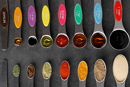 DGBAY Set di 8 cucchiai dosatori magnetici con livellatore - Cucchiaio dosatore da cucina bifacciale impilabile cucchiaino per misurini in acciaio inox secco e liquido (colore