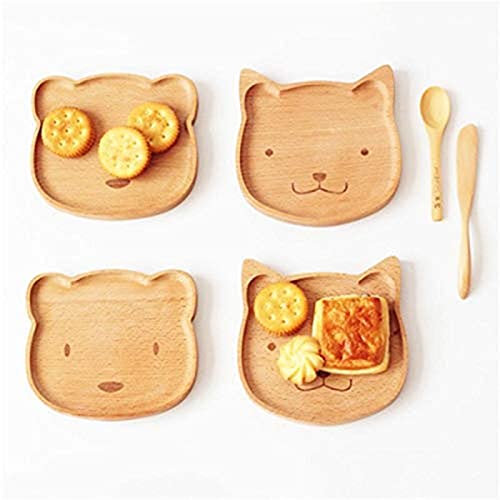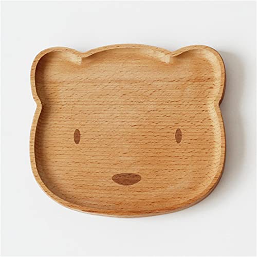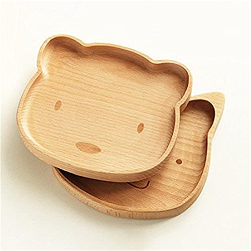 DGFgfgh Simpatico Piatto in Legno massello di Gatto/Orso, piattino, Vassoio da tè, Piatto da Dessert, stoviglie da tavola, Bambino Che Serve Piatto di Legno Gatto/Orso b