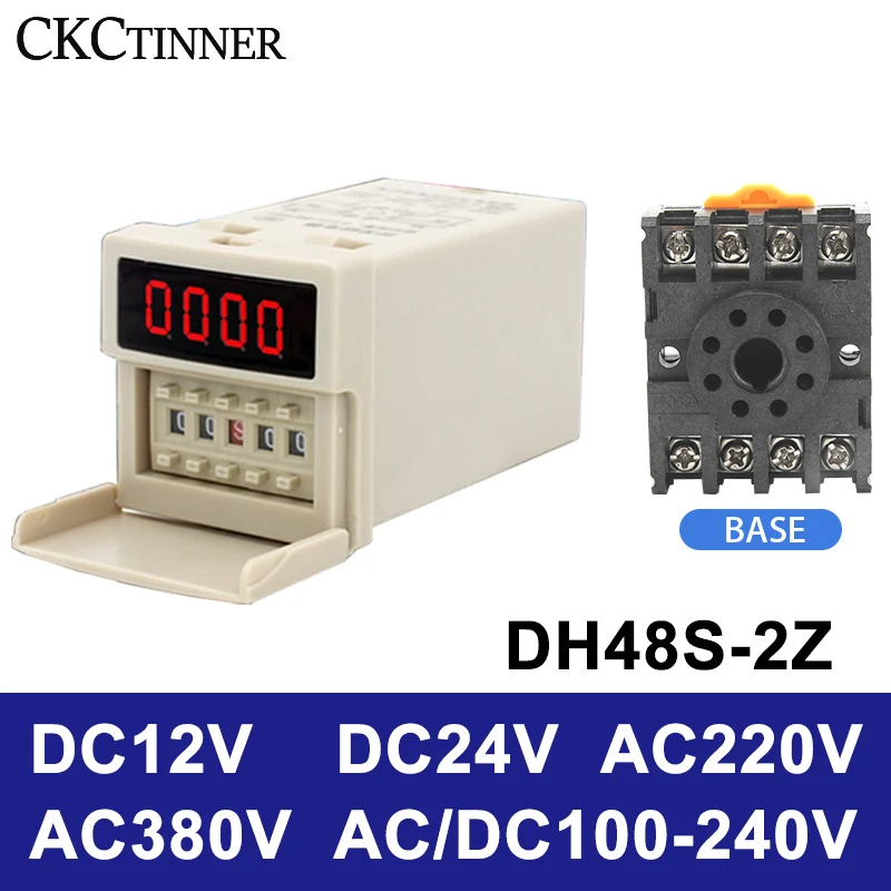 DH48S-2Z Digital LED Programmable Timer Relay Switch 0.01S-99H99M Delay Timer With Socket Base AC/DC 12V 24V 36V 110V 220V 380V