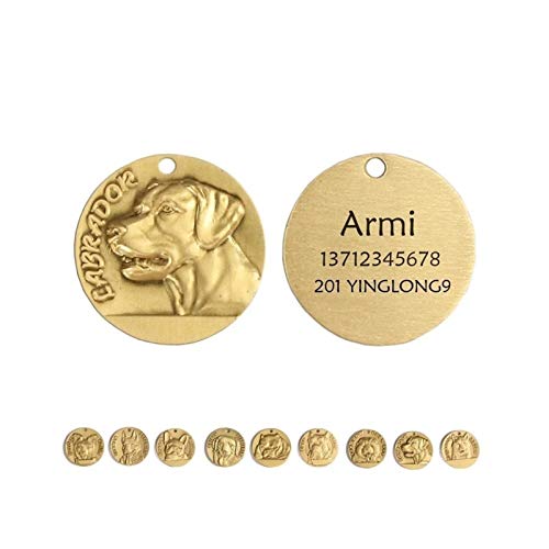 DHDHWL Medagliette Identificative 1pcs Dog Tag ID Rame Puro Grandi Incisione Cani Tags Collare Accessori Targhetta (Color: Labrador Retriever, Size: 1 Piece)