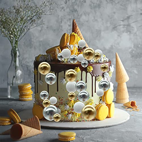 DHER Topper Torta Palloncini Cupcake Schiuma Topper 30 Pezzi Palla D'Oro Decorazioni Per Torte Ornamenti Palla Torta Di Compleanno Inserto Festa A Tema Decorazione Torta Fai Da Te Decorazione (#1)