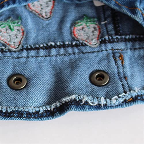 DHGTEP Vestiti per Cani Giacca di Jeans per Cani Cool Blue Denim Coat con Ricamo Strawberry Small Medium Dogs Lapel Vests (Size: S)