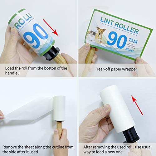 DHMAKER Rullo lanugine, adesivo potente, con 2 robuste rotelle in bambù e 6 rotoli di ricarica (90 fogli per singola ricarica, per un totale di 540 fogli, circa 78 m)