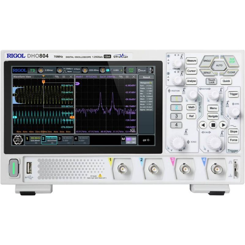 Dettagli tecnici Ampiezza di banda 70 MHz Calibrato di fabbrica senza certificato Categoria di misura (LOV) CAT I Dimensione del prodotto, larghezza 265.35 mm Dimensione del prodotto, lunghezza 77.38 mm Dimensioni (L x L x A) 77.38 x 265.35 x 161.75 mm Dimensioni prodotto Altezza 161.75 mm Interfacce (componenti) LAN, Dispositivo USB, USB-C, HDMI Numero max. Ingressi analogici 4 Peso 1.78 kg Risoluzione (metrologia) 12 Bit Tipo prodotto Oscilloscopio digitale Oscilloscopio multifunzione digitale compatto La serie DHO800 è il nuovo oscilloscopio digitale RIGOLs, potente ed economico. Nonostante il suo design compatto offre prestazioni superiori. Offre una velocità di rilevamento fino a 1.000.000 wfms/s (in modalità UltraAcquire), una profondità di memoria di 25 Mpts, una risoluzione di 12 bit e un rumore ridotto. Testo tradotto automaticamente Punti di forza e dettagli 70 MHz Numero max. Ingressi analogici 4 Caratteristiche Rumore di base ultra-basso, segnale più puro, nessun piccolo