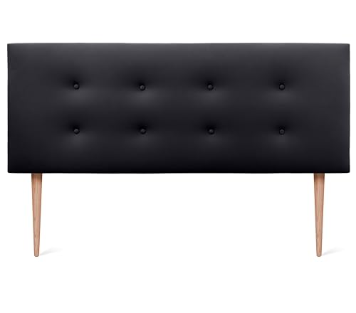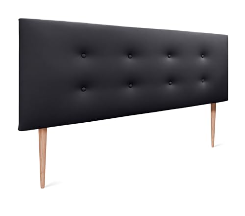 DHOME Testiera in Similpelle o Tessuto AQUALINE Pro Testiera con 2 File di Bottoni Testiera Imbottita Letto di Lusso (150x105cm con Gambe (Letti 150/160), Similpelle Nero)