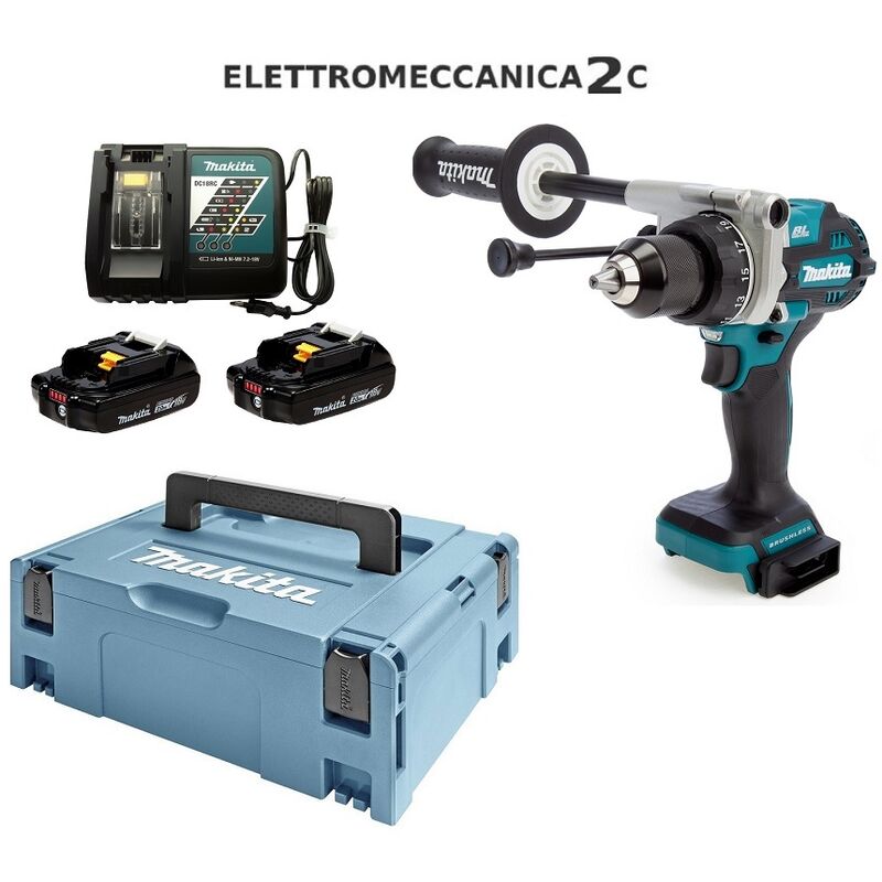 DHP486RAJ Avvitatore a percussione 18v Caratteristiche: Motore brushless XPT (eXtreme Protection Technology) per utilizzo in presenza di polvere e gocce d'acqua LED di illuminazione Dati tecnici: Tensione 18 V Capacità 2,0 Ah Colpi al minuto 8.250 - 31.500 c/min Velocità a vuoto 550 - 2.100 g/min Dim. lxwxh 178X81X265 mm Peso (EPTA) 2,7 kg Foratura muratura 16 mm Foratura metallo 13 mm Foratura legno 50 mm Coppia di serraggio max 130 Nm Dotazione 2 batterie 18v-2ah Caricabatterie Valigetta Makpac