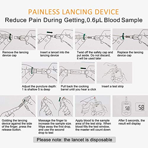 【RISULTATI DELLA PROVA RAPIDI E ACCURATI】 - Le strisce di elettrodi aggiornate che evitano interferenze da variazioni di ossigeno nel sangue ti danno la certezza dell'accuratezza. Ottieni risultati in meno di 5 secondi. In conformità con gli ultimi standard accurati ISO 15197: 2013, puoi gestire il tuo diabete con fiducia