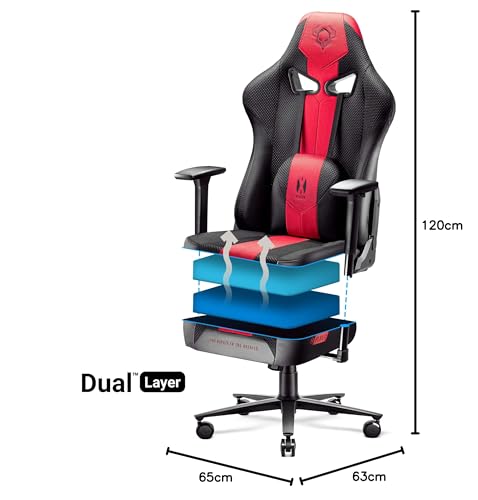 Materiali di alta qualita - Il rivestimento in tessuto e similpelle di alta qualità e lusso si sente a proprio agio. I tessuti (fibra di ortica e rete a nido d'ape Diablo) sono traspiranti e resistenti. La pelle sintetica HDS è impermeabile e di facile manutenzione. Altezza consigliata per la sedia: fino a 150 cm.