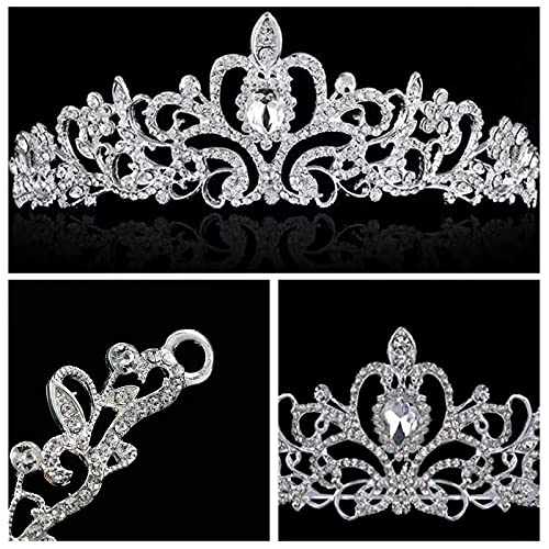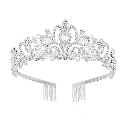 Diadema Corona Cristallo con Pettine Strass Tiara Corona Strass Regina Nuziale Argento Diadema di Strass Corona Diadema Nuziale di Cristallo RetròArgento per Feste,Matrimoni,Spettacoli,Feste