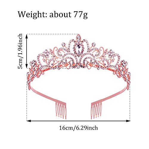 Diadema di Cristallo Corona D'oro Rosa Fascia per Capelli Principessa Elegante Diadema Con pettini, Strass Matrimonio Compleanno Diadema Corona Nuziale di Cristallo con Pettine Corona Principessa per
