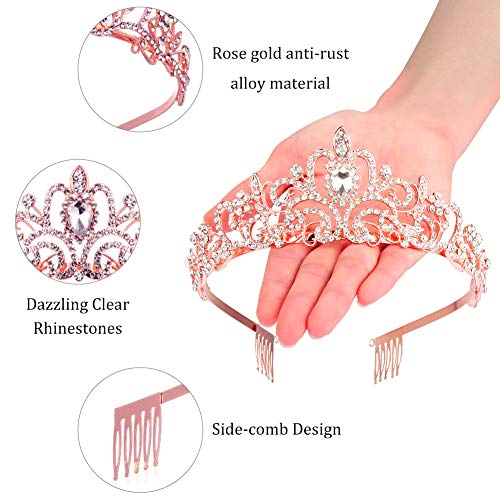Materiale: Materiale in lega dura affidabile e brillante decorazione scintillante di strass, ti fanno scintillare in mezzo alla folla.Colore principalmente oro rosa, elegante e puro, la scelta migliore per la sposa.