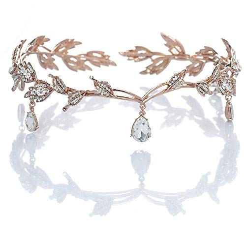 Diadema Foglie Fascia Della Foglia Corona,Tiara Nuziale di corona archetto nuziale diadema cerchietto Tiara di Cristallo Strass Corona per Matrimonio Nuziale, Proms, spettacoli, Feste, Compleanno