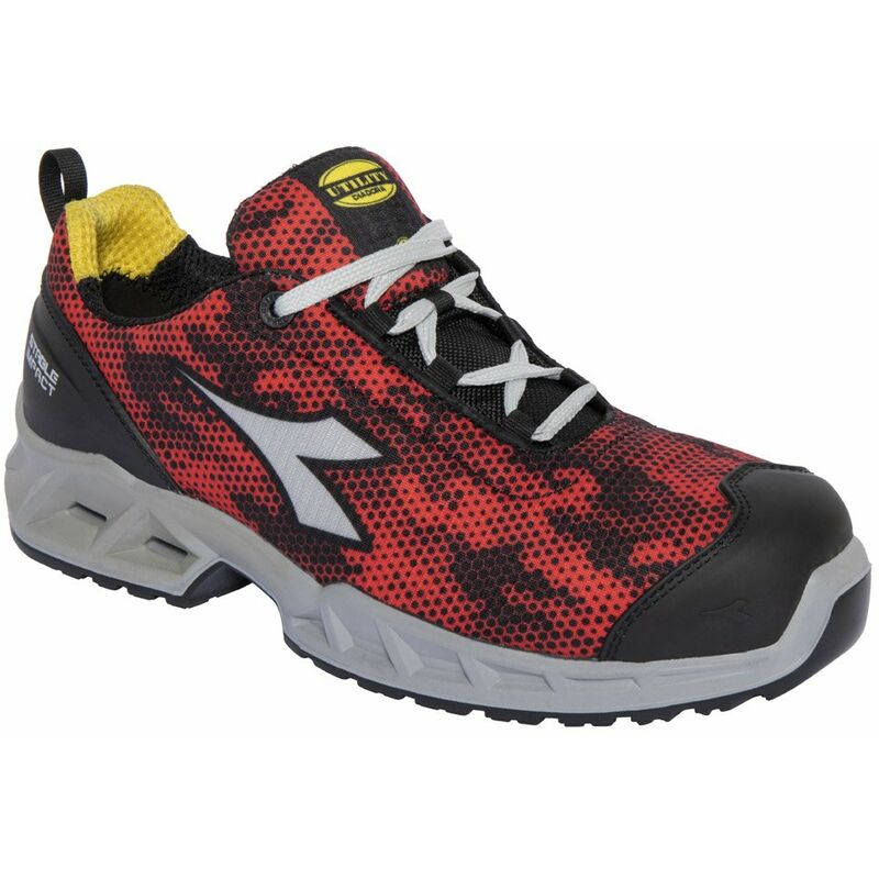 Calzatura di sicurezza bassa S1P in tessuto tecnico poliestere 350 gr/m² con tecnologia di ammortizzazione Stable Impact System. Puntale in alluminio 200J. Calzata 11. Fodera Air Mesh con antiscalzante in microfibra, K-SOLE, plantare in PU foam estraibile, traspirante e con carboni attivi. Protezione della punta e del tallone in TPU.