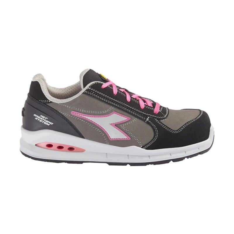 Le scarpe da lavoro donna Diadora Run Net Airbox Low S3 SRC sono realizzate specificatamente per il pubblico femminile molto attento alla sicurezza e alle tendenze della moda. La tomaia realizzata in pelle scamosciata trattata con il sistema Net Breathing By Geox che ne aumenta sensibilmente la traspirazione è integrata con finiture fucsia che ne esaltano la linea. Le Diadora Run Net Airbox sono così composte: Tomaia in pelle scamosciata idrorepellente morbida e resistente Speciale membrana microporosa, sistema di traspirazione Geox, che garantisce l'assorbimento del sudore sotto forma di vapore acqueo e lo espelle tramite la suola forata Fodera in terna in Nylon 300 g/m 2, resistente alle abrasioni, traspirante, assorbenete e deassorbente Protezione del tallone TPU Plantare estraibile microforato in PU foam con carboni attivi Intersuola in PU espanso D-Light leggera, con traspirazione laterale Net Breathinh System by Geox Inserto Mass Dumpe r che ammortizza l'energia d'impatto