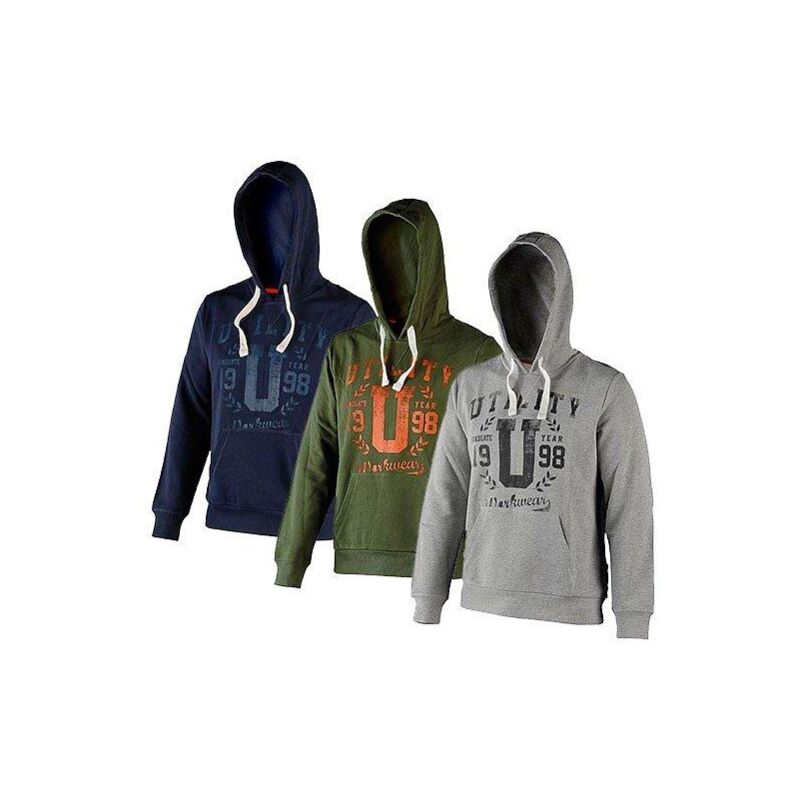 disponibile in tre colori ( grigio, verde militare e blu corsaro) con stampa frontale Utility che le assicura un aspetto casual e di tendenza. Il cappuccio regolabile e la tasca a marsupio la rendono p articolarmente pratica e comoda . Inoltre la composizione del tessuto assicura un'elevata traspirabilità, un' ottima durata nel tempo e una tenuta dei colori eccezionale. Composizione Unbrushed Jersey 100% Cotone 280 gsm