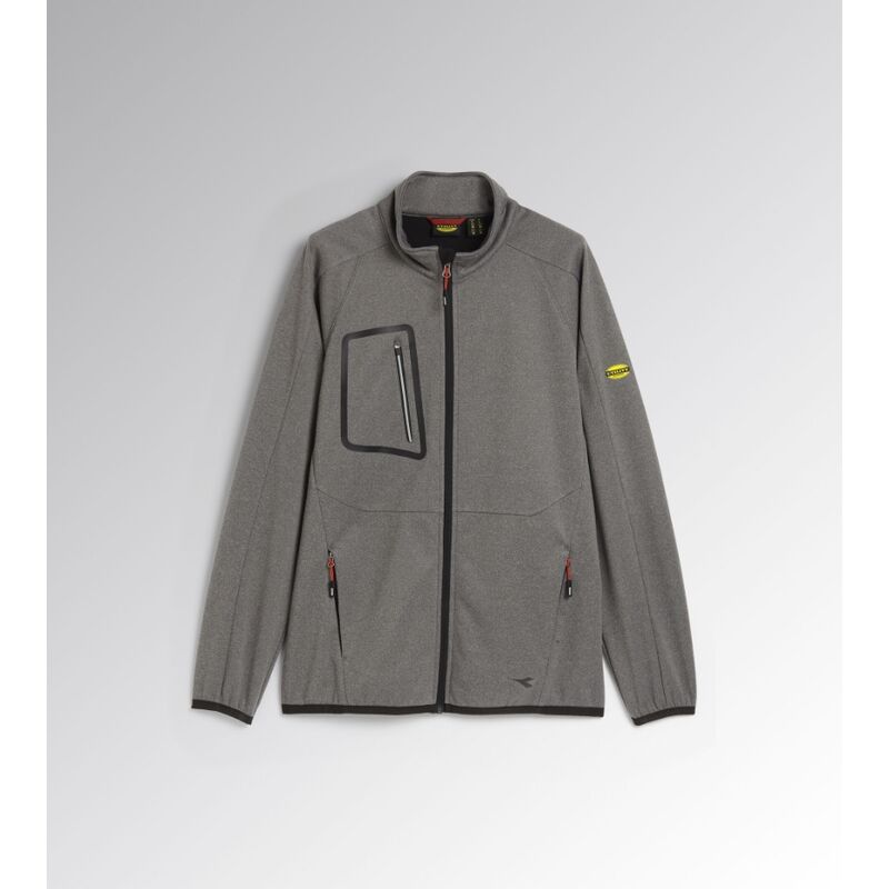 Softshell leggero in tessuto tecnico. Collo in piedi con manica ergonomica. 2 tasche laterali e una tasca frontale con con zip. Dettagli reflex. Fondo e polsini con bordo elastico.