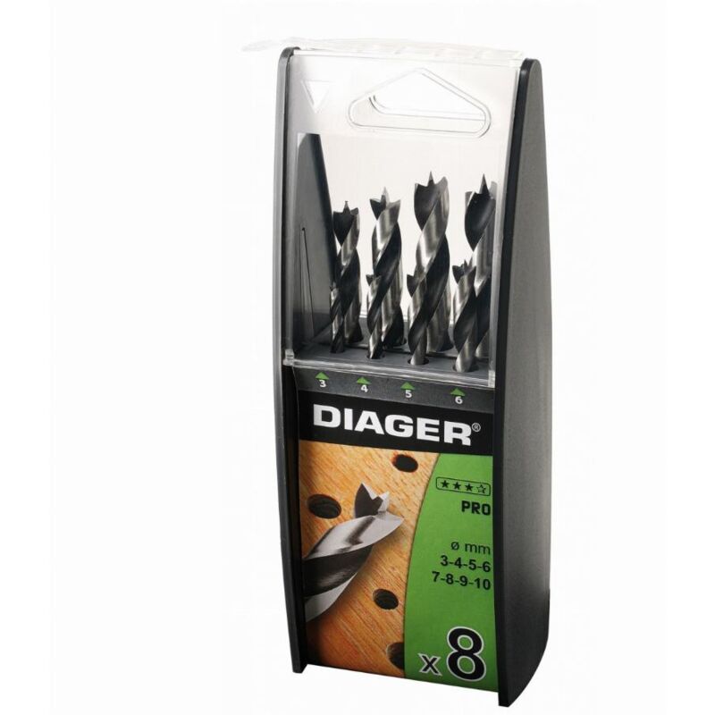 Dettagli: 1 punto di centraggio 2 taglienti Prestazioni Caratteristiche: Set di 8 punte per legno a 3 punte PRO X1 punte ø3x61 mm X1 punte ø4x75 mm X1 punte ø5x86mm X1 punte da trapano ø6x93mm X1 punte ø7x109m Punte X1 ø8x117mm Punte X1 ø9x125mm Punte X1 ø10x133mm