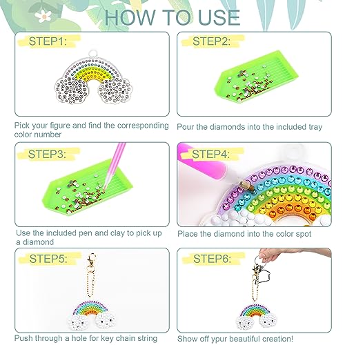 ✨【Ampie applicazioni】il set di kit fai-da-te con diamanti contiene motivi ricchi, come farfalle, gufi, fiori, arcobaleni, scoiattoli, libellule, piante, ecc. I bambini possono realizzare portachiavi con diamanti da appendere ai loro sacchetti di scuola, zaini, borse, ecc.