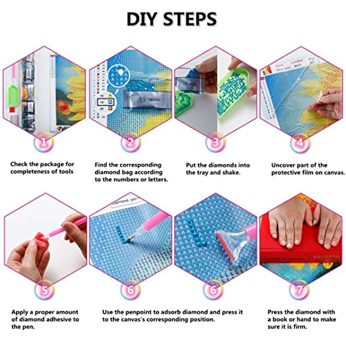 〖 KIT DI PITTURA CON DIAMANTI INCLUSI 〗: Kit di diamond painting incluso: Diamanti,Borsa con chiusura lampo,Tela * 1,Vassoio di plastica * 1,Penna per trapano * 1,Colla per trapano * 1 (Nota: Cornice per foto non inclusa).La pittura diamantata può essere eseguita senza acquistare strumenti aggiuntivi.