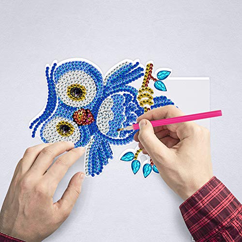 DIY 5D Diamond Painting Kit Luci a LED Colorate Luce Notturna per Bambini Lampada da Tavolo a Pile Lampada Decorativa per Soggiorno Camera da Letto Decorazioni per Feste (Gufo sul ramo)