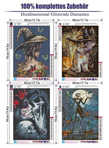 Diamond Painting - Set di 4 quadri per Halloween, con diamanti 5D, per adulti, gatto, zucca e strega, fai da te con diamanti d'amore, scheletro, farfalla, per decorazione della parete della casa