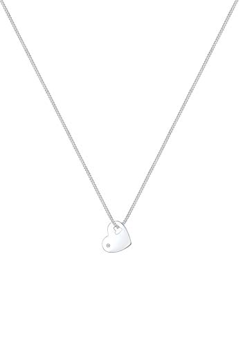Diamore Collana con Ciondolo a Forma di Cuore da Donna in Argento 925 con Diamante Bianco, Taglio Brillante