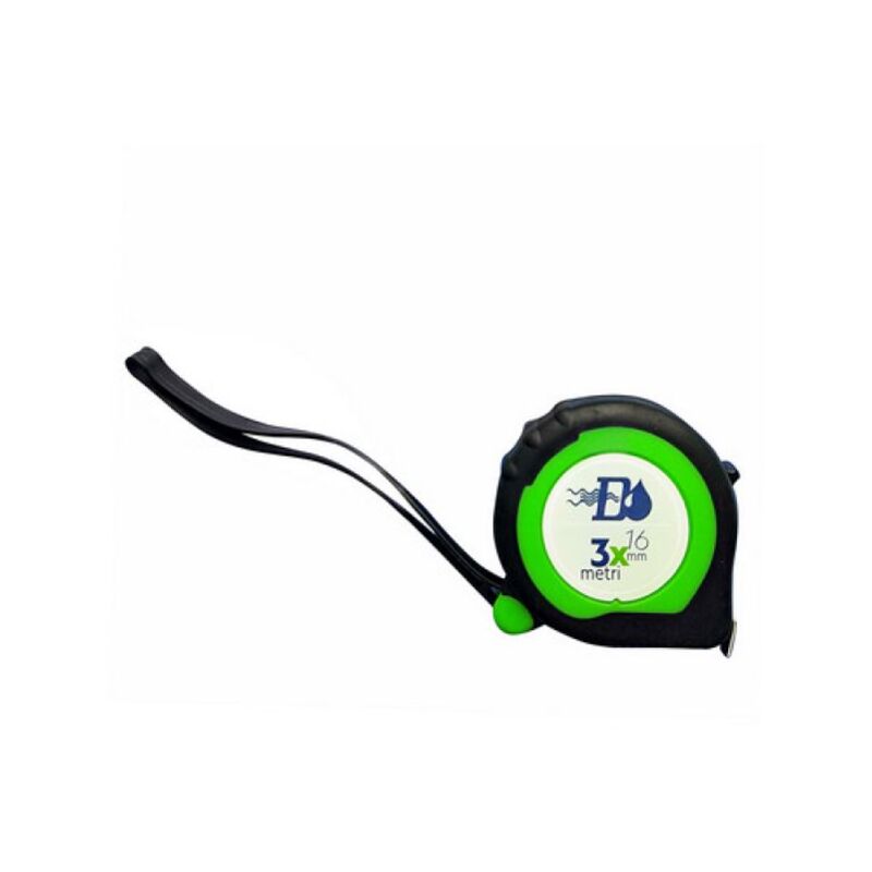 Flessometro con cassa in ABS e rivestimento antiurto in gomma. Gancio multipresa in metallo, doppio bloccaggio del nastro con rientro automatico. Fornito di clip e laccio. (DianFlex) mt. 10 x 25 mm (in Blister)