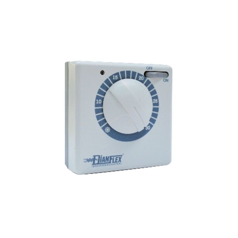 Regolazione della temperatura da +5 a +30°C. Termostato ad espansione di vapore saturo. Alimentazione 230V. Grado di protezione IP20. (DianFlex)